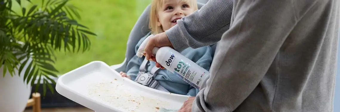 Krzesełko do karmienia po obiedzie z maluchem często wygląda jak pole bitwy. Resztki marchewki, kaszki i owoców znajdują się wszędzie, a tacka, z której dziecko za chwilę znów będzie zbierać jedzenie, wymaga gruntownego i bezpiecznego czyszczenia. Używanie silnych detergentów w tym miejscu jest wysoce niewskazane.